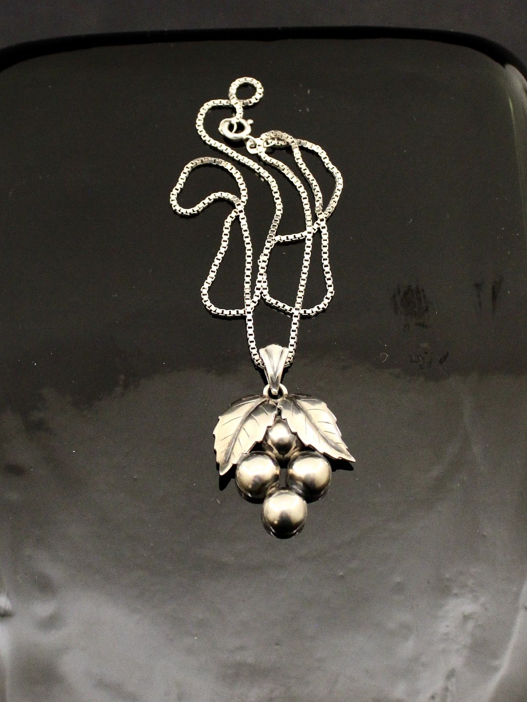 830 silver grape pendant 3 x 2.6 cm. stamped John Denmark 830s and sterling silver chain 42 cm. subject. 582901
