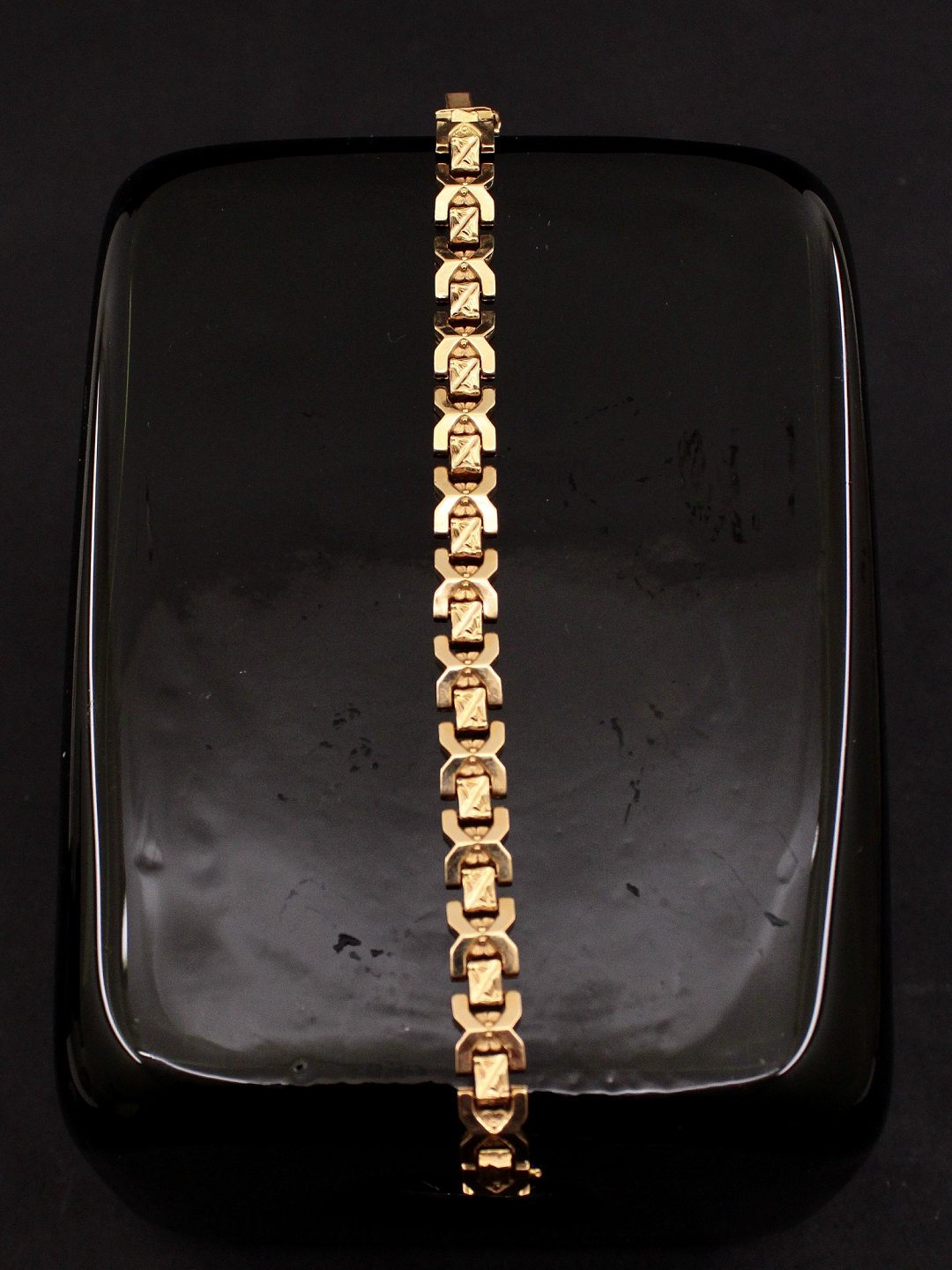 18 carat gold bracelet 19.5 cm. W. 1 cm. weight 17.6 cm. Item No. 582902