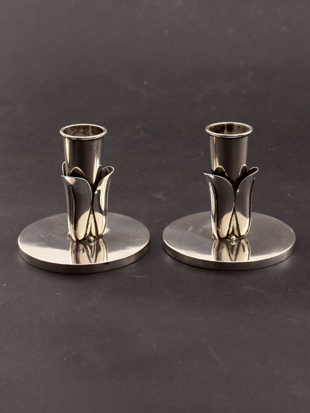 Et par håndsmedet 830 sølv art deco lysestager H. 7,3 cm. fra sølvsmed H V Hansen København emne nr. 588172