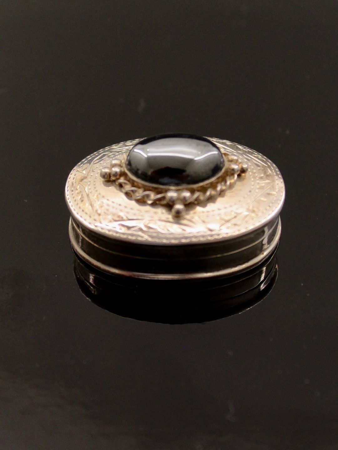Sterling silver pill box 3.2 x 2.4 cm. with hematite subject no. 588526
