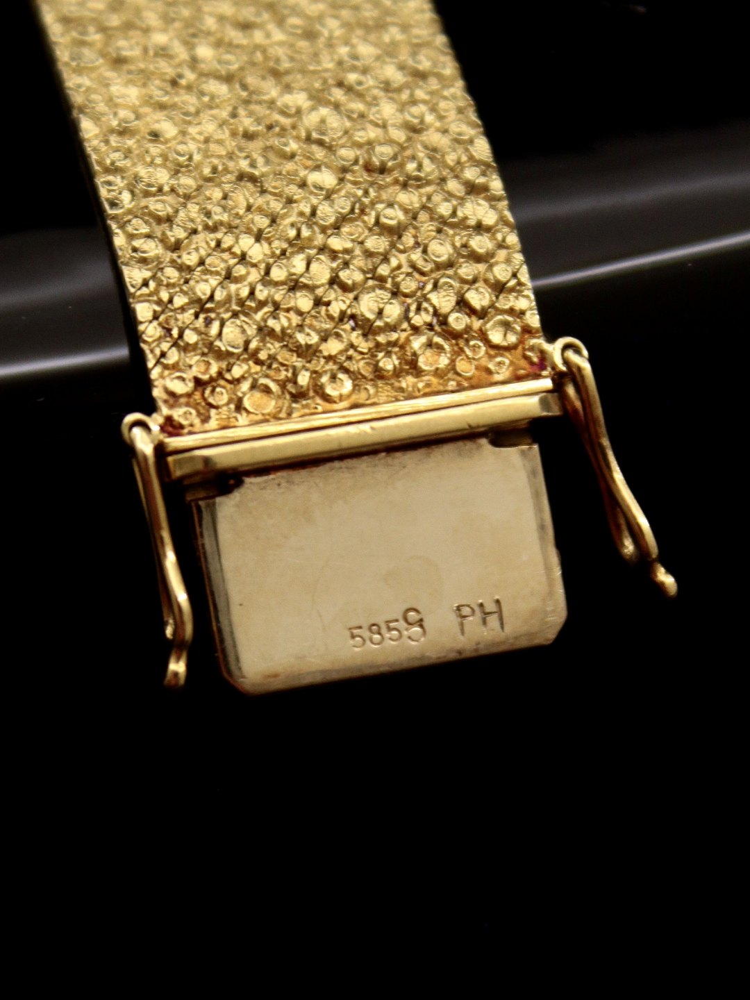 14 carat gold bracelet L. 18 cm. W. 1.6 cm. weight 46.7 grams from Peter Hertz Copenhagen subject no. 592411