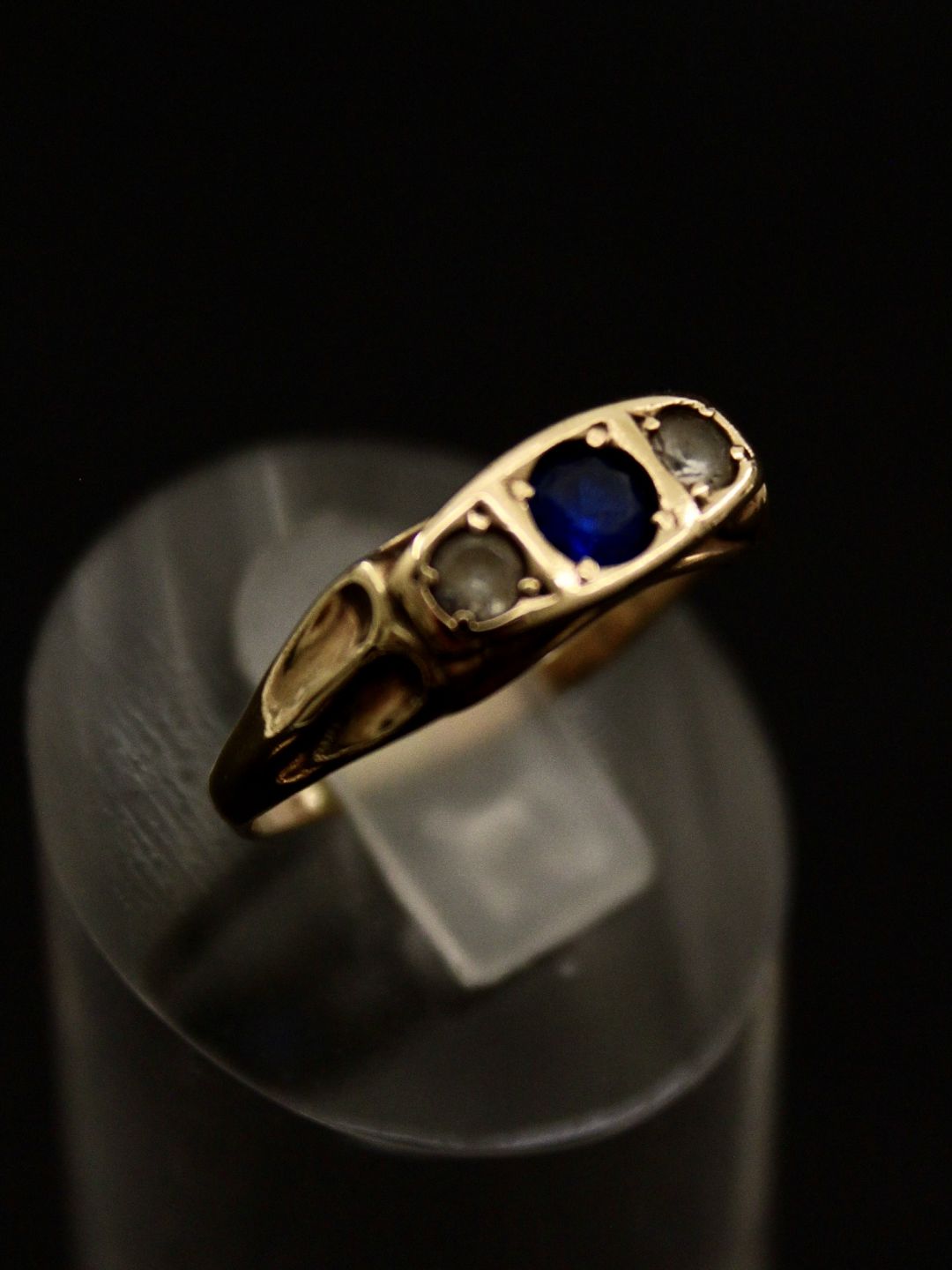 8 karat guld ring størrelse 53 med blå og klare stene fra guldsmed Herman Siersbøl emne nr. 593682