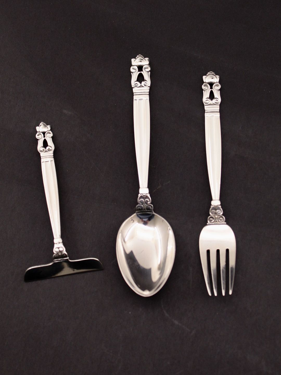 Georg Jensen konge sterling sølv barne bestik sæt på 3 dele emne nr. 595980