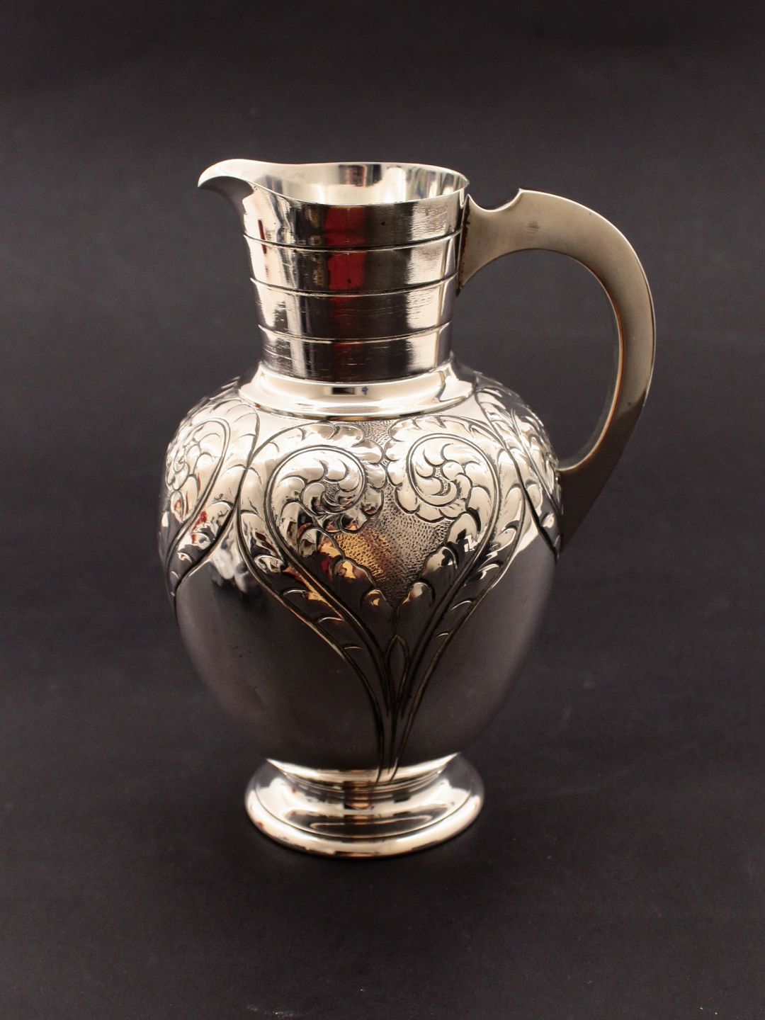 Art Nouveau tretårnet sølv kande H. 21 cm. vægt 405 gram fra sølvsmed Rasmus Jensen Horsens emne nr. 596274