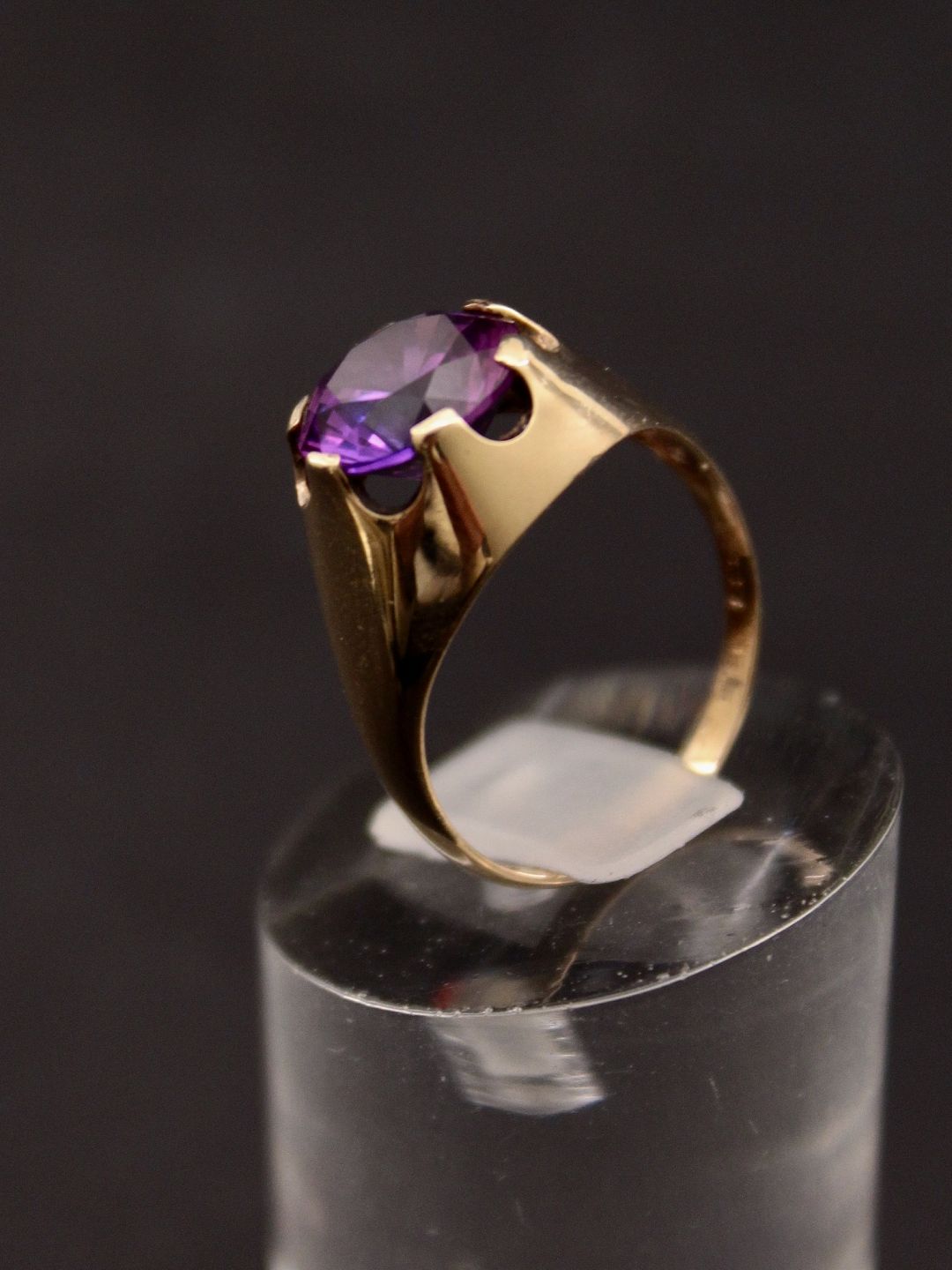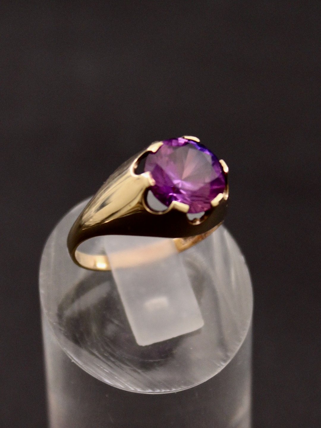 8 karat guld ring størrelse 52 med ametyst stemplet 333 HS for guldsmed Herman Siersbøl København emne nr. 601514