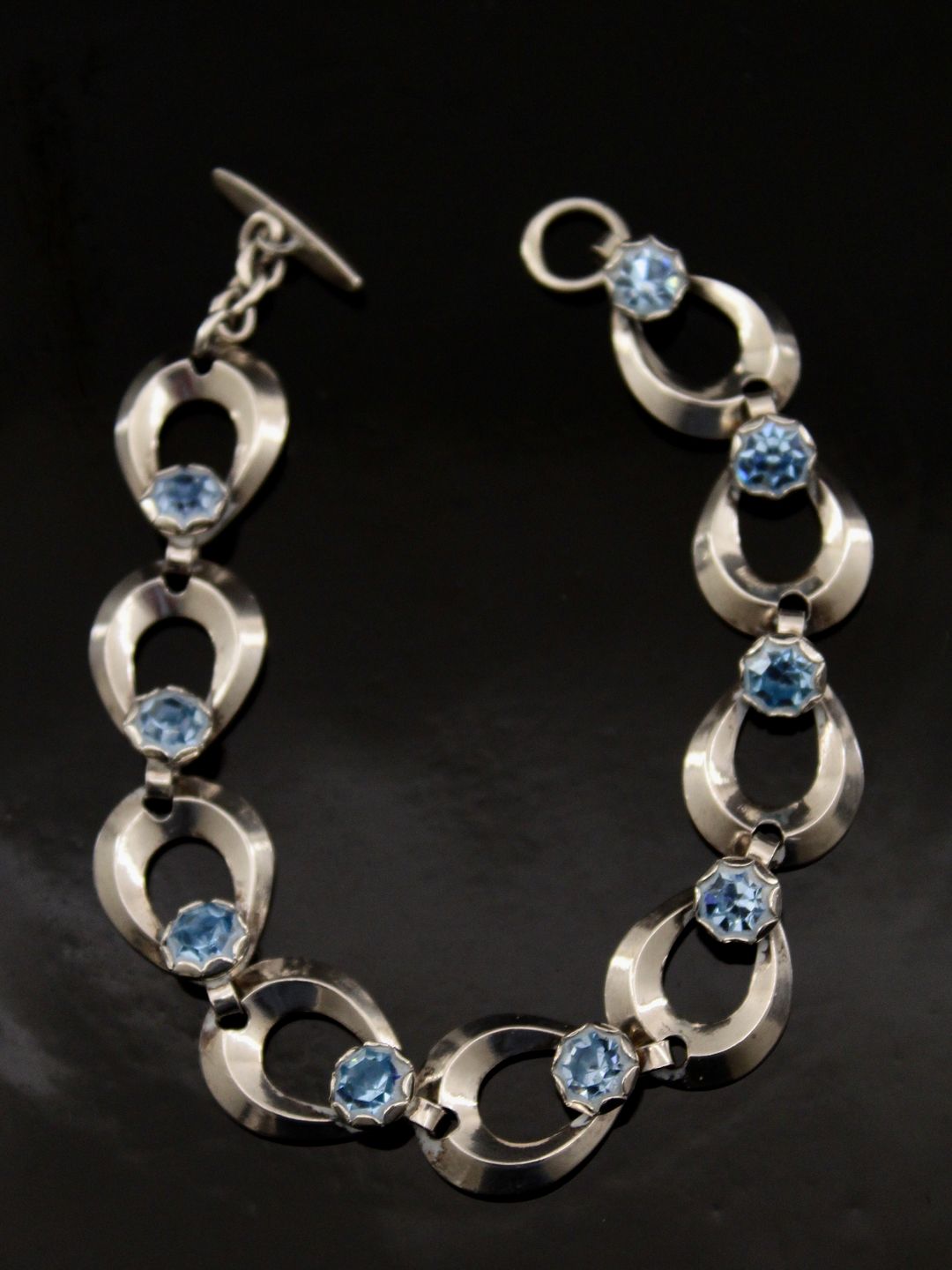 Sterling sølv Armlænke med blå stene L. 19 cm. stemplet 925 HS for juveler Herman Siersbøl emne nr. 603691