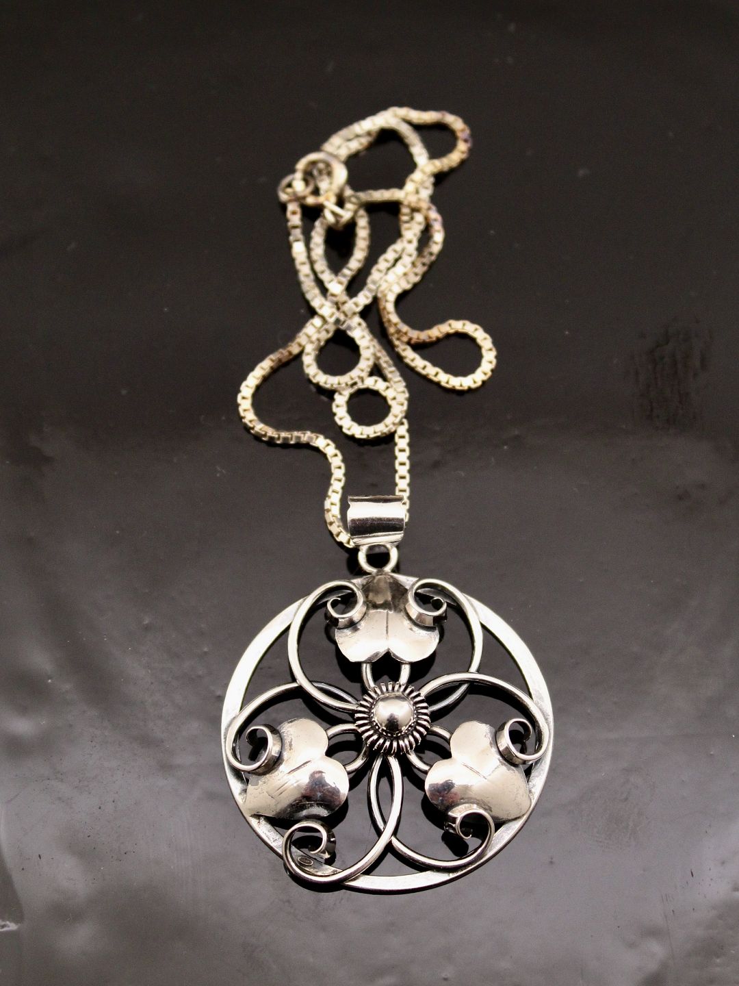 Art deco vedhæng med hjerter D.3,8 cm. stemplet 830s og 830s kæde 39 cm. emne nr. 606800