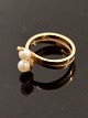 14 karat guld ring med 2 ægte perler størrelse 57-58 stemplet 585 JØL for guldsmed Jørgen Larsen København emne nr. 606977