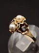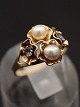 14 karat guld ring med ægte perler og aquamariner størrelse 56 stemplet 585 HS for guldsmed Herman Siersbøl emne nr. 610033