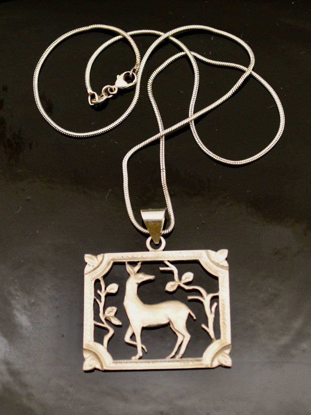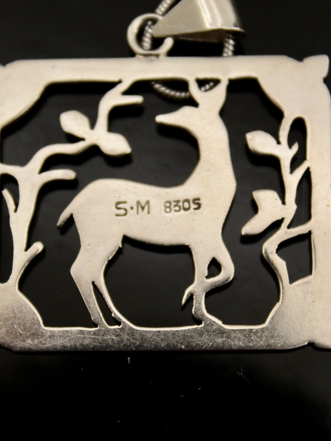 Art deco 830 sølv vedhæng 3,7 x 3,5 cm. og sterling sølv kæde 43 cm. emne nr. 610137