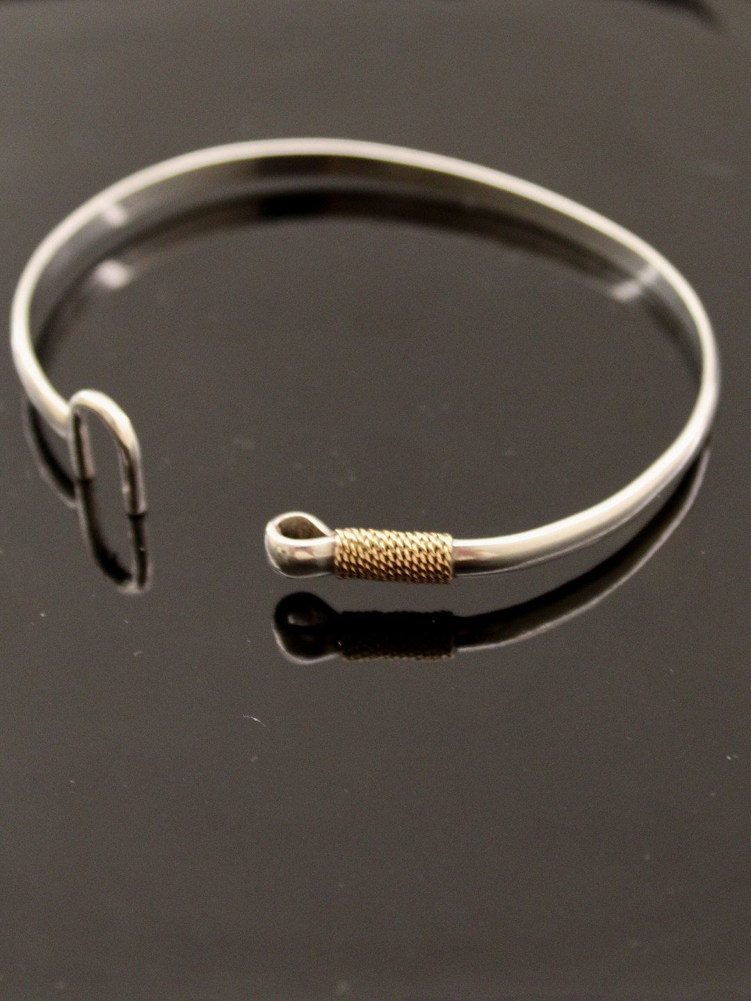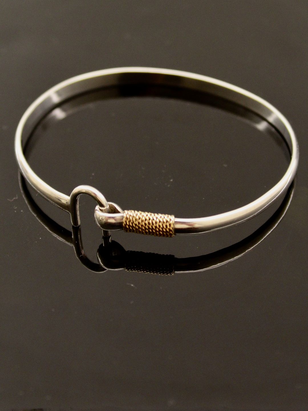 Sterling silver bangle with 14 karat gold thread 6 x 5.2 cm. stamped 925s and 14K item no. 610290