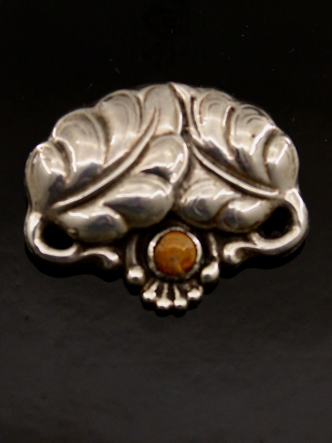 Art Nouveau 830 silver brooch with amber 4.5 x 3.6 cm. item no. 611o31