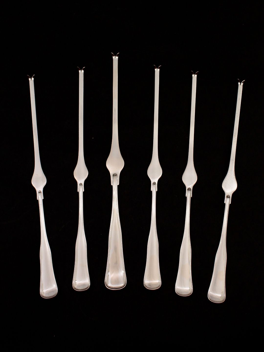 Old Danish lobster forks set of 6 one larger than the others silver item no. 611762