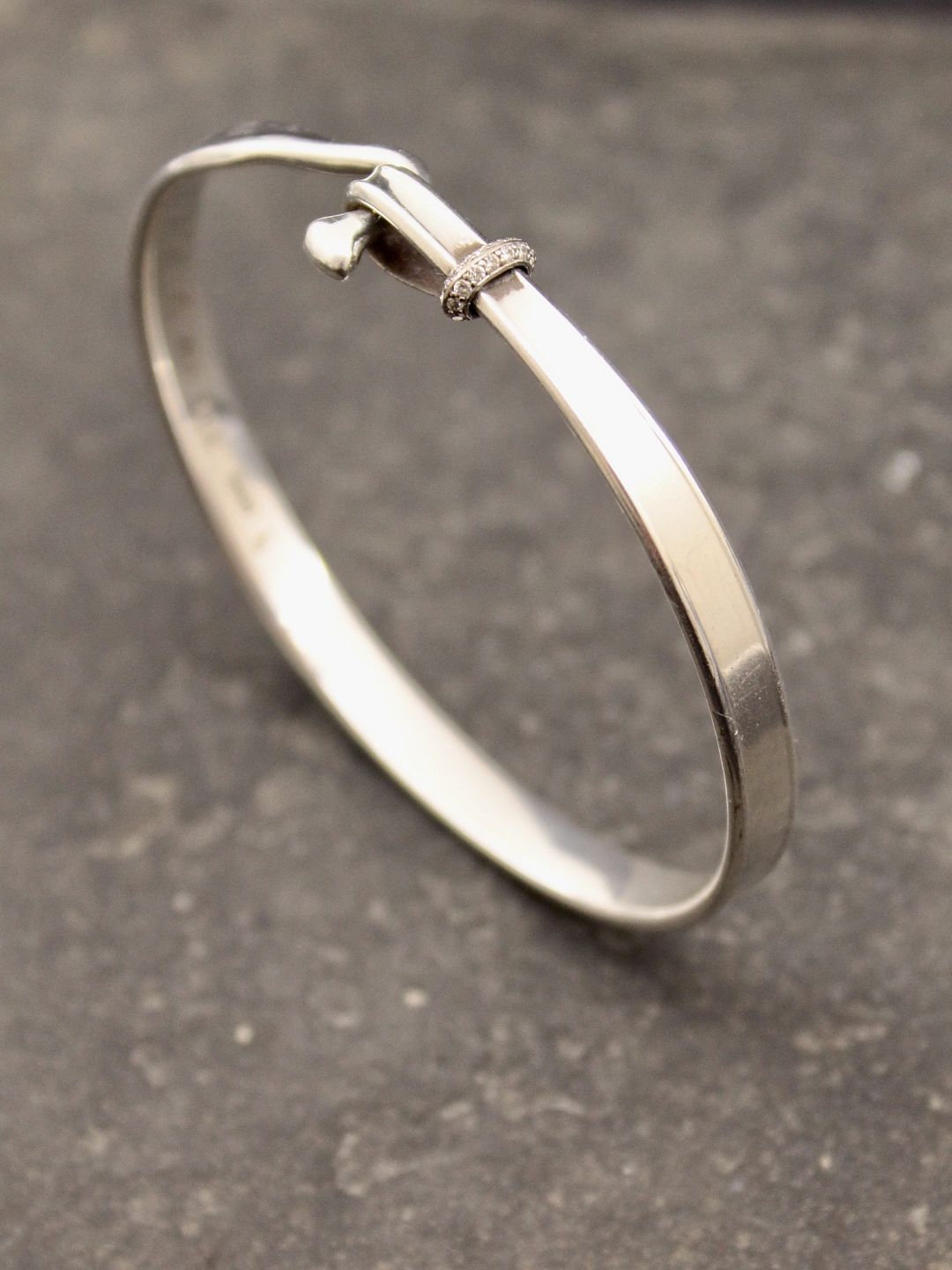 Georg Jensen Sterling silver Turan bangle with diamonds #204 design Vivianna Torun Bylow-Hybe inside 6 x 5.3 cm. item no. 612263