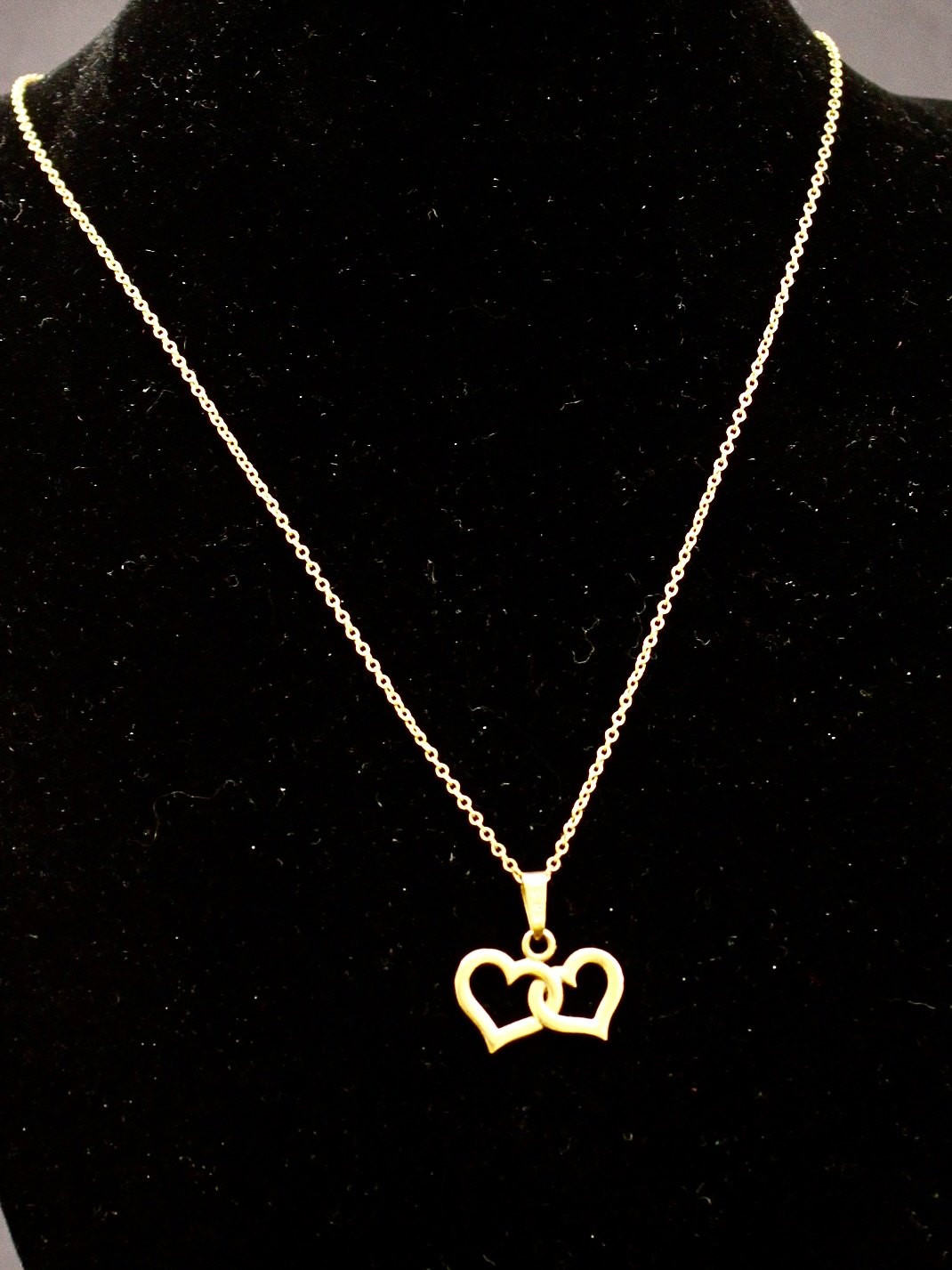 8 karat guld hjerter 1,3 x 1,9 cm. og 8 karat guldkæde 42,5 cm. fra guldsmed Herman Siersbøl København emne nr. 634141