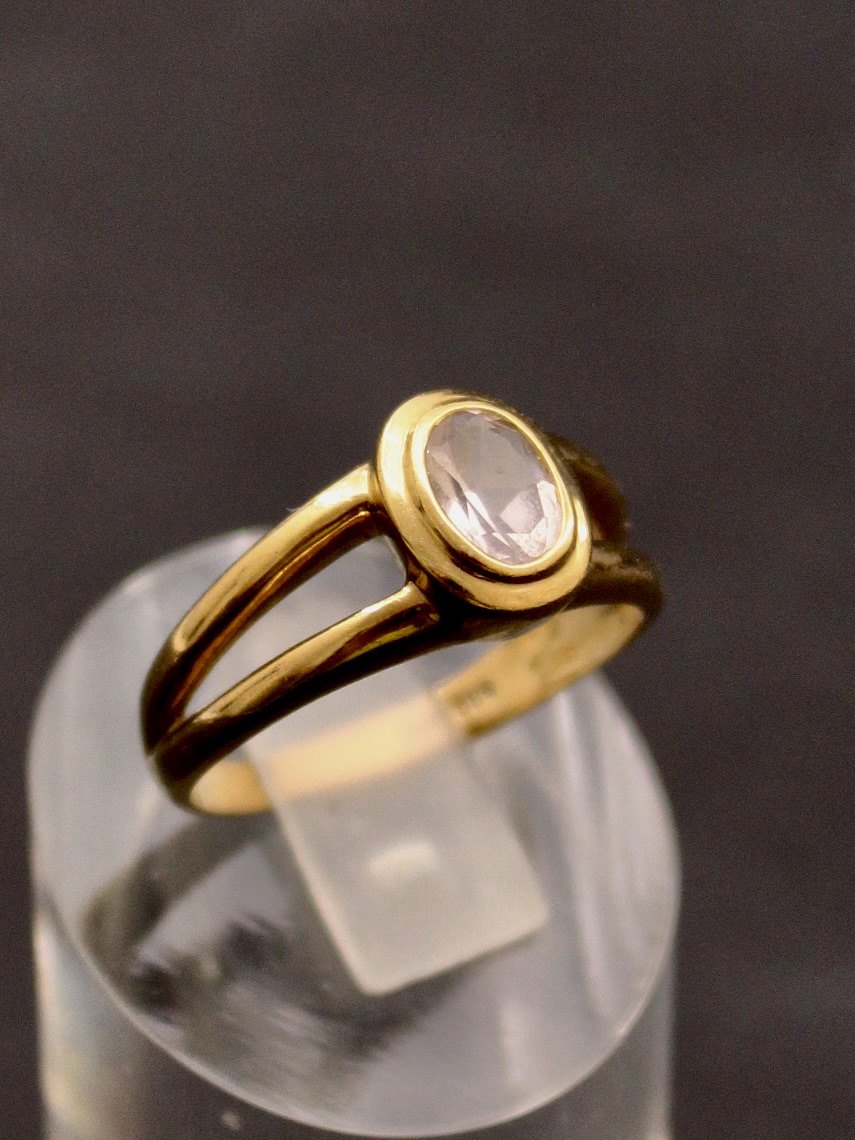 8 karat guld ring størrelse 56 med svag lyserød sten fra guldsmed Jens Aagaard Svendborg emne nr. 636622