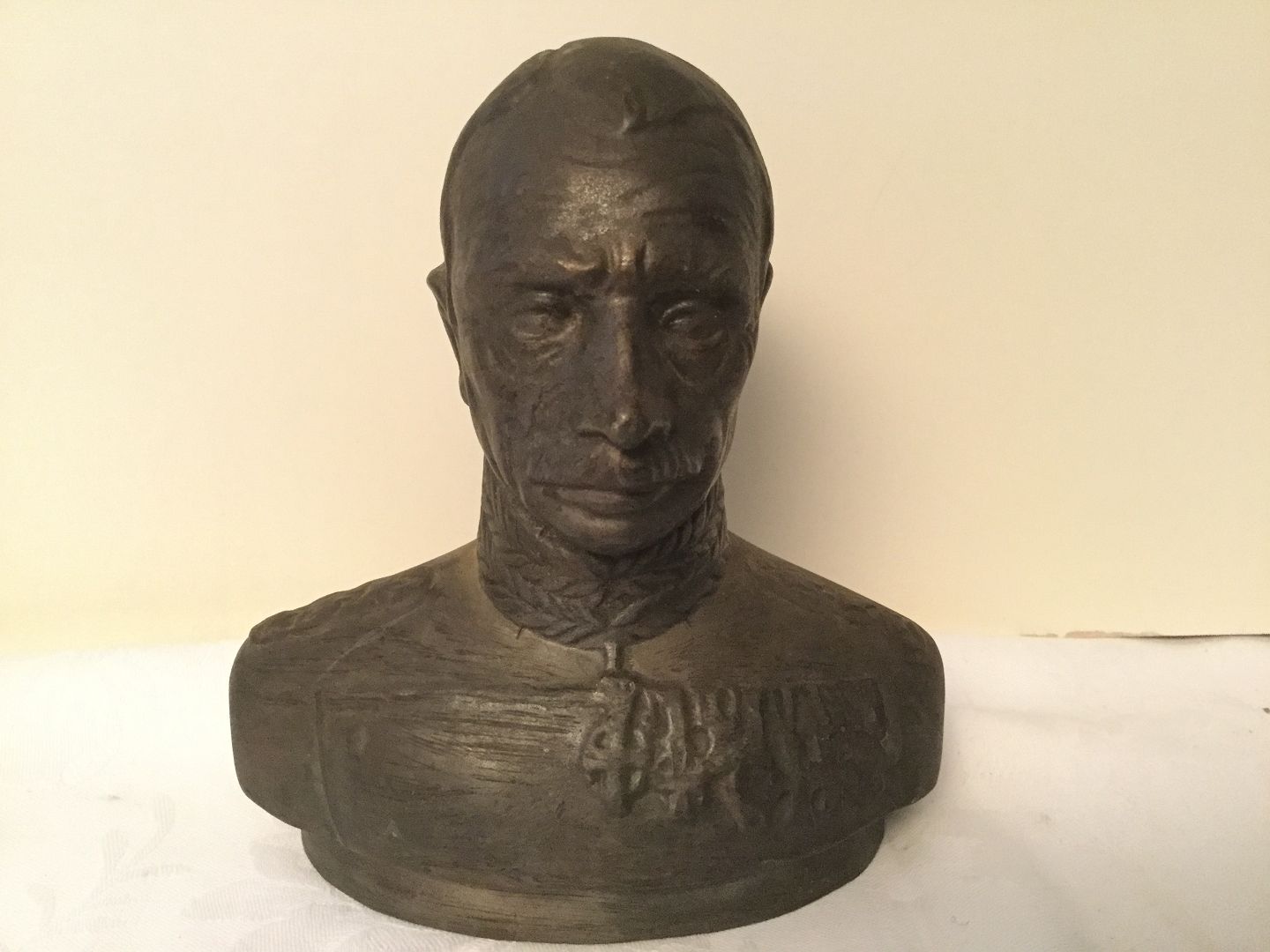 Bust in metal of King Christian d. 10. Height 14.5 cm width 13.5 cm