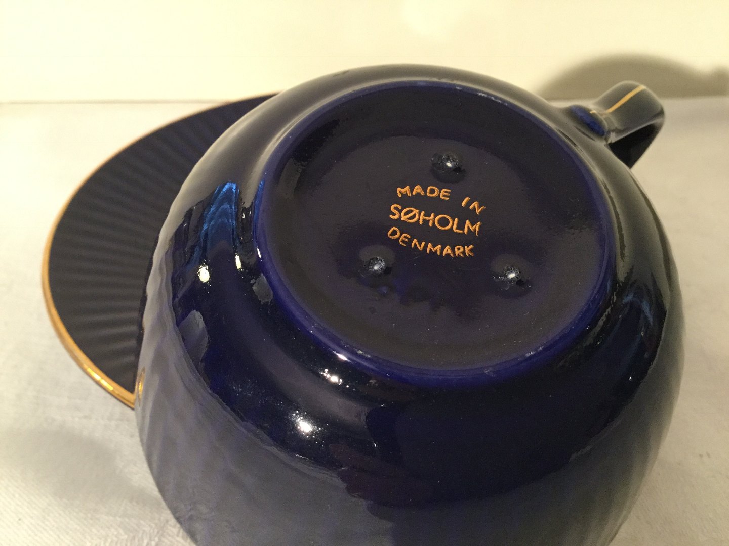 Bornholm ceramics, Søholm, Teacup set, Blue with gold edge *Nice condition*