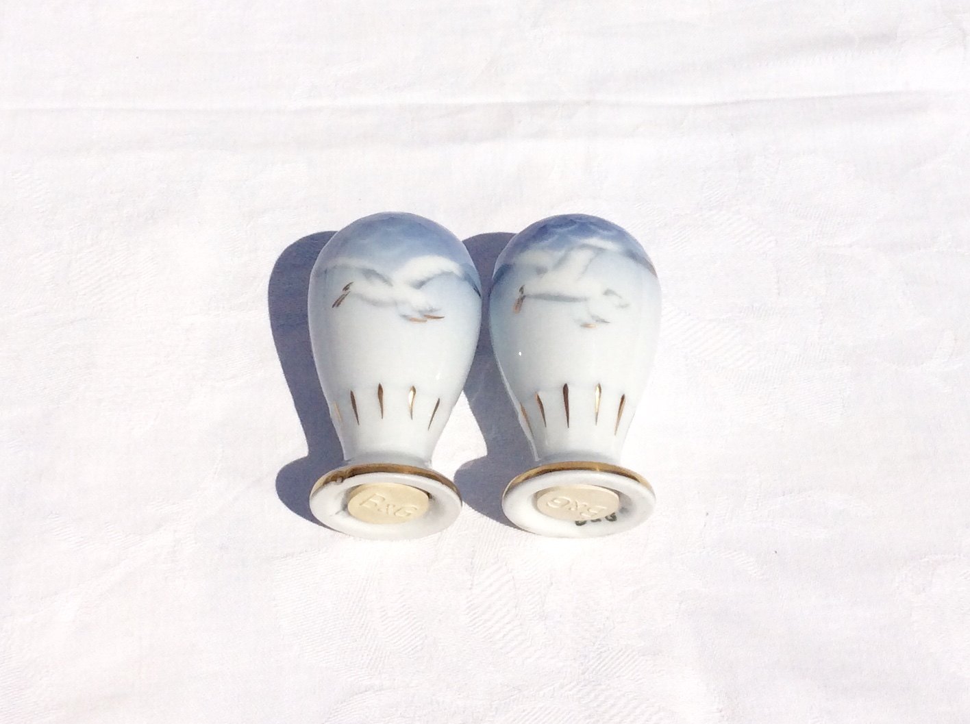 Bing & Grondahl, Seagull with gold, Salt and pepper gays # B & G, 8cm high, Design Fanny Garde * Nice condition *
