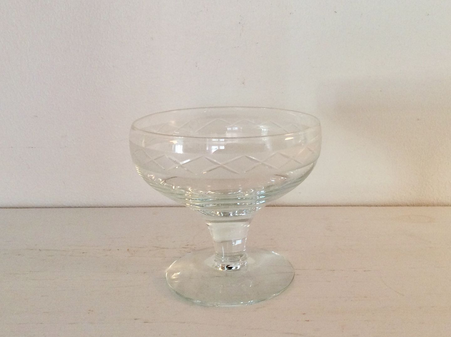 Holmegaard, Ejby, Champagne bowl with cross-cuts, 9cm high, 9.3cm in diameter, Design Jacob E. Bang * Perfect condition *