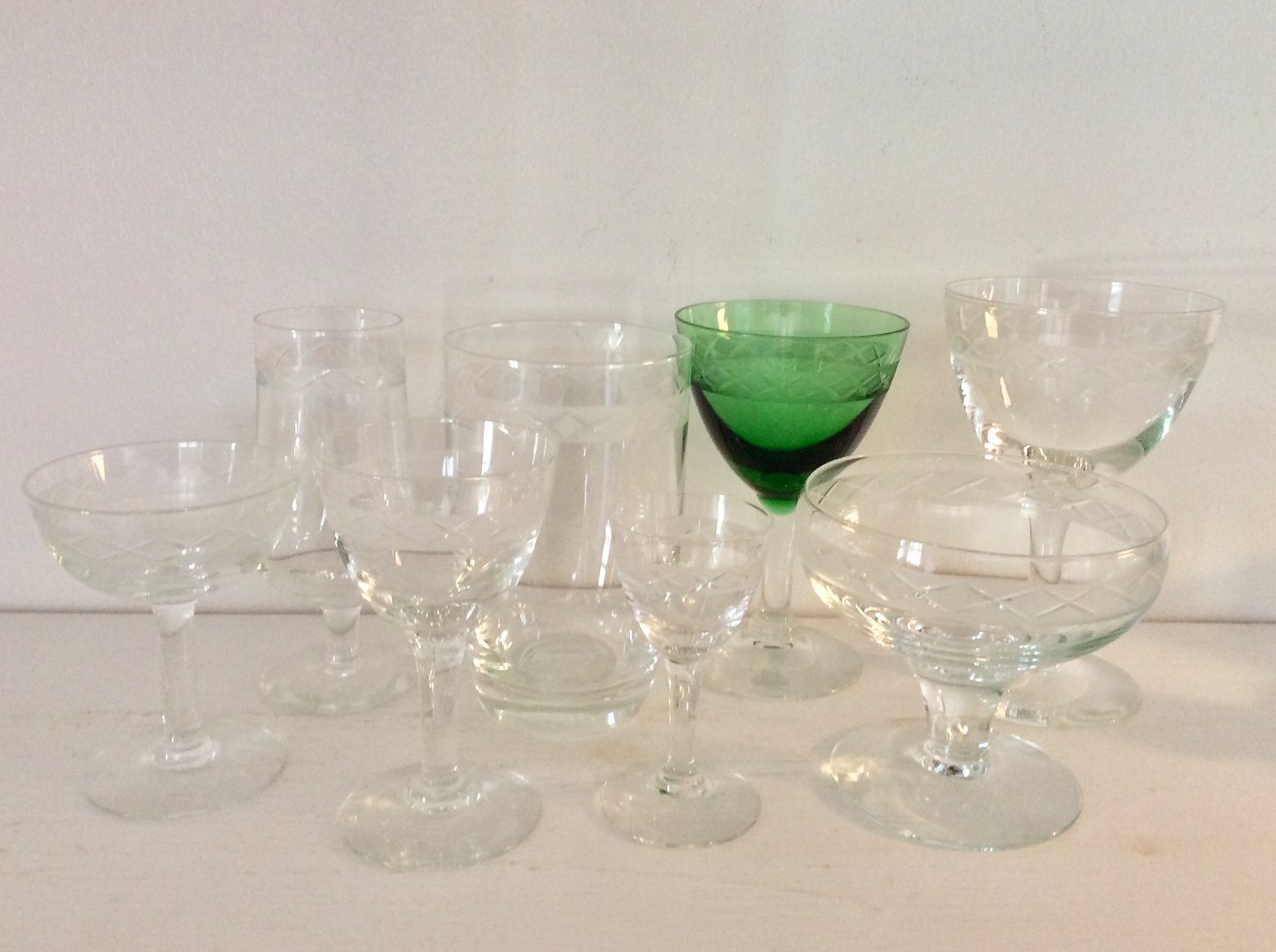 Holmegaard, Ejby, Port wine glass with cross grinding, 10cm high, Design Jacob E. Bang * Perfect condition *