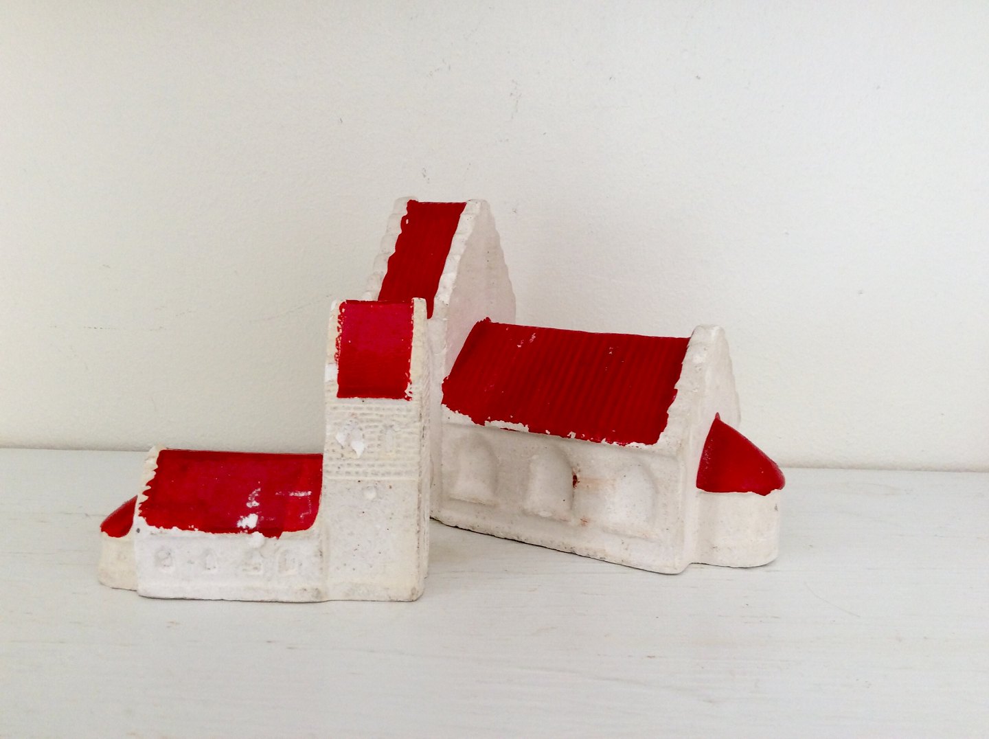 Charming plaster churches for Christmas decoration, from the middle of the 20th century *Has traces of use*