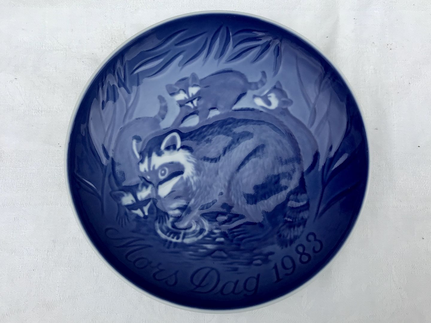 Raccoon with Cubs. Bing & Grondahl, Mother's Day Platte, 1983, 18cm in diameter, Design Henry Thelander * Nice condition *