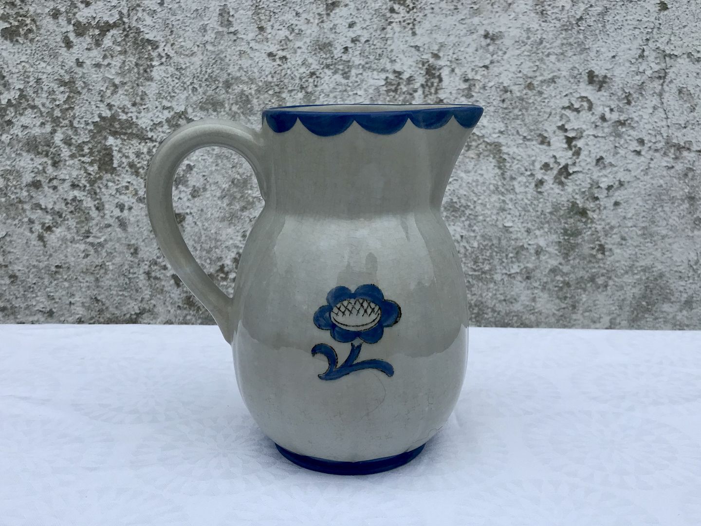 Gustavsberg, Blue pyro, Pitcher, 17cm high, 15cm wide, Nr. 158, Design Wilhelm Kåge * Cracked and light brown *
