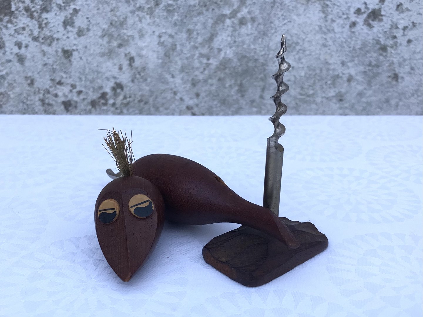Retro teak bird, Opener & Corkscrew * Fine with patina *