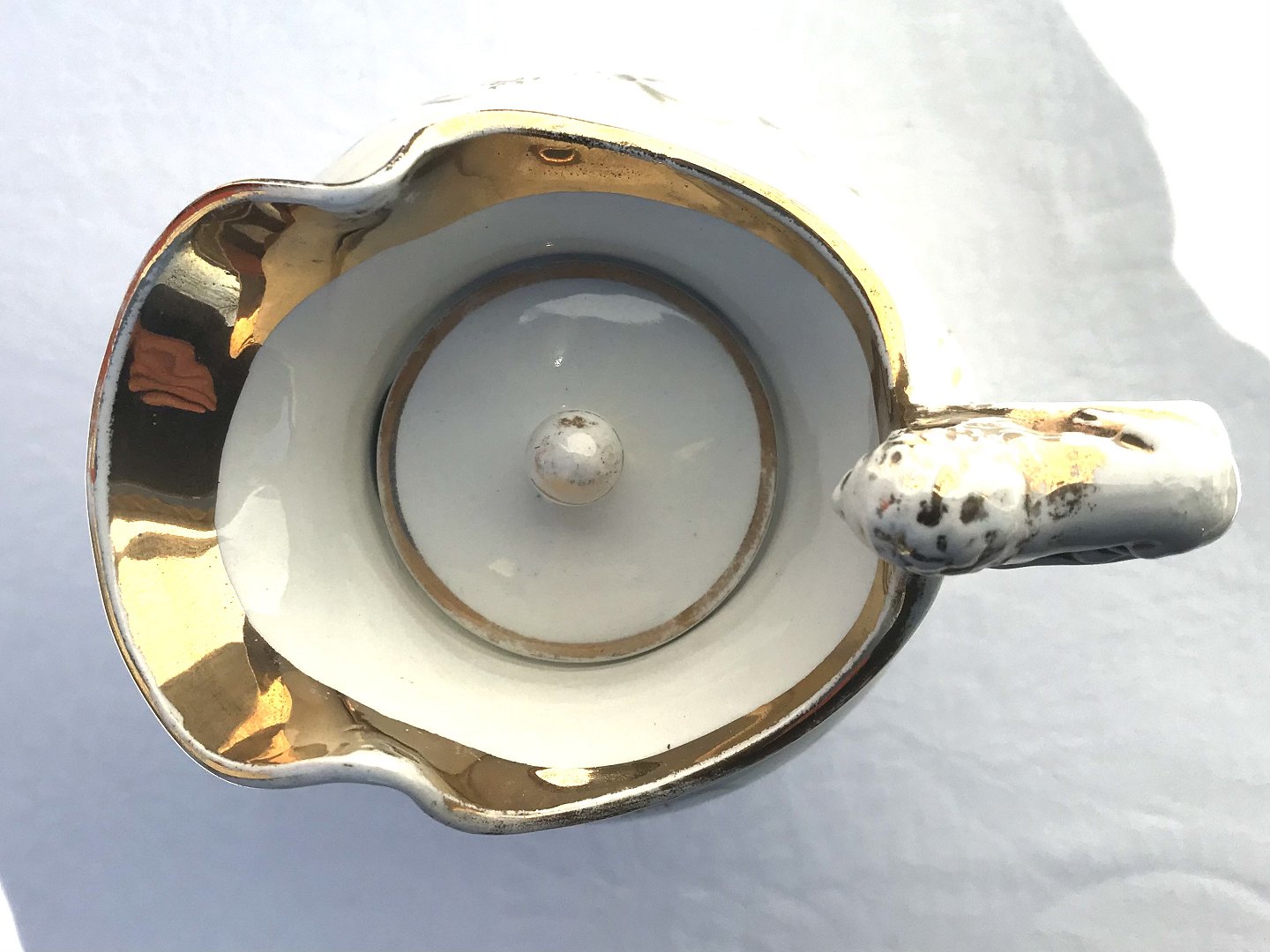 Chocolate jug, Flower decorated and lion handle, 25cm high, 16cm in diameter * Nice condition but with wear on the gold edge *