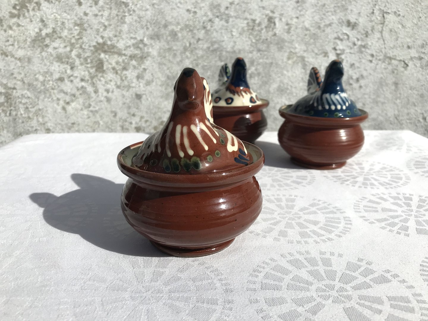 Seidelin ceramics, Faaborg, Ceramic chickens, 2pcs brown, (The blue and white are sold), 10cm in diameter, 11cm high *Good condition with some signs of wear*