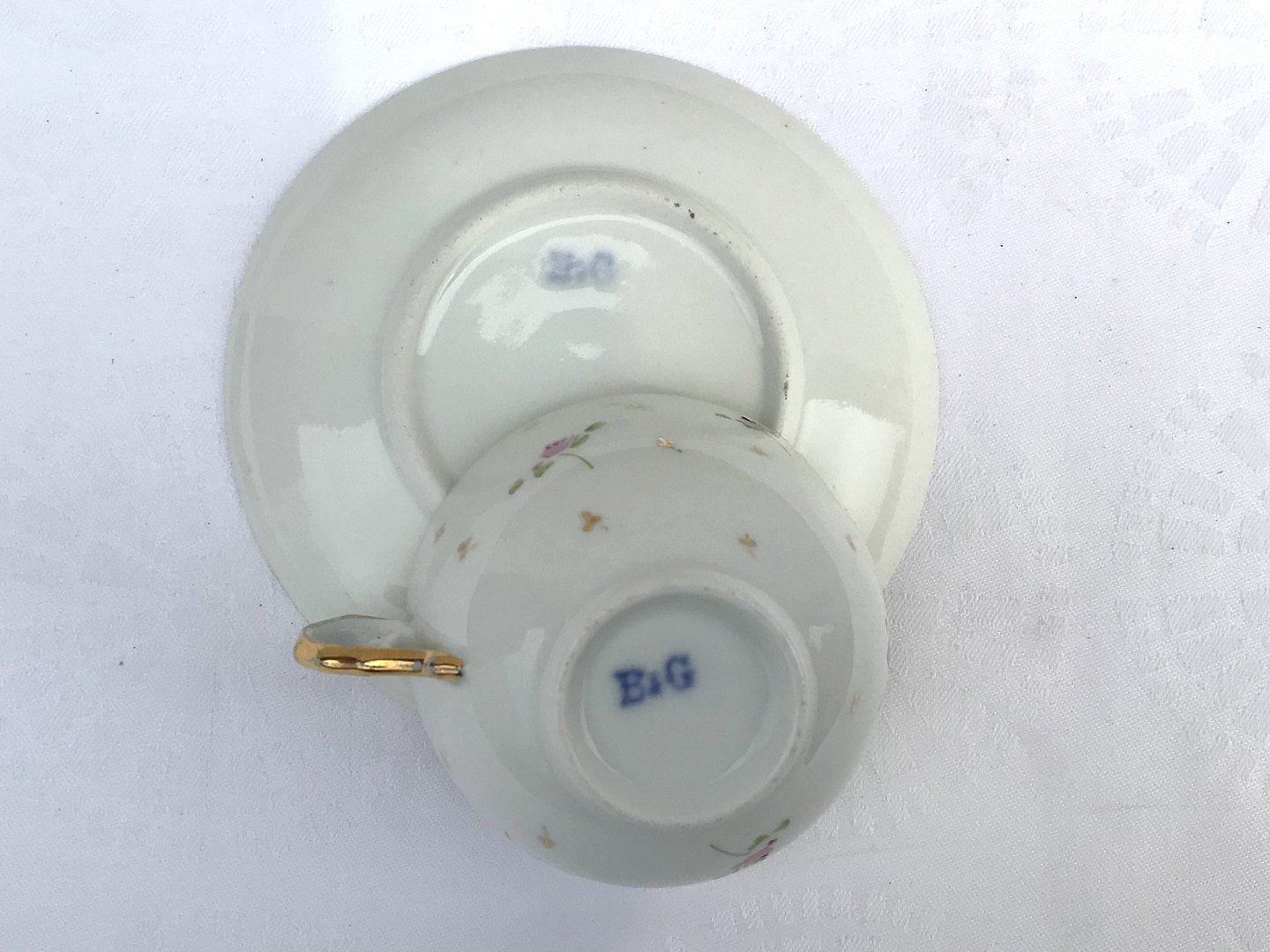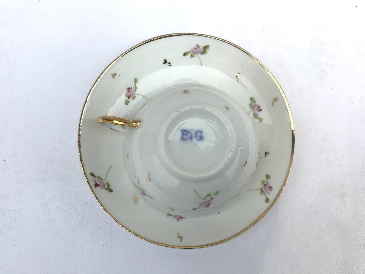 Bing & Grondahl, Cups with pink roses and gold edge, 8cm in diameter, 4.7cm high * With age-related traces of use *
