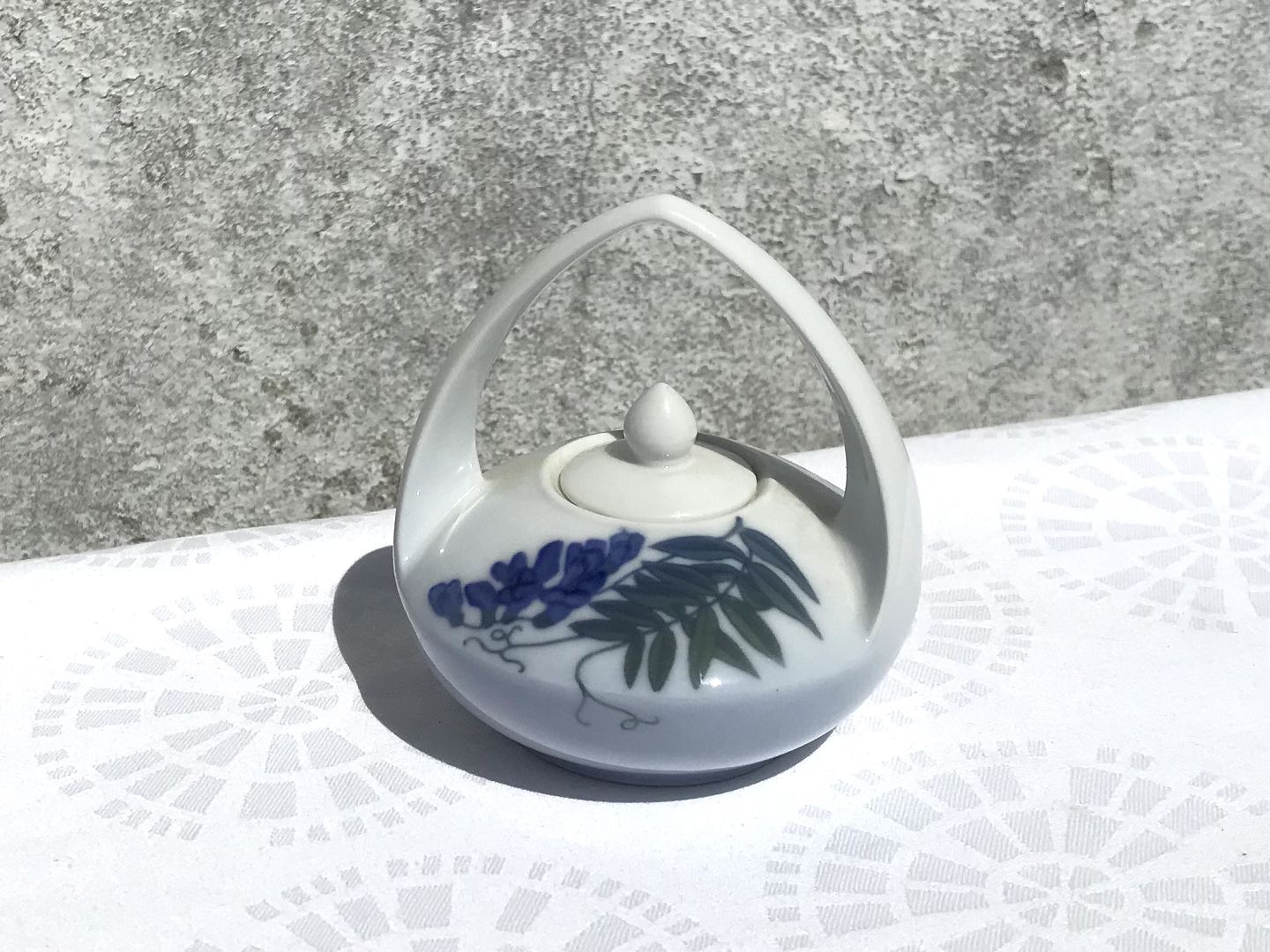Royal Copenhagen, Lid jar with wisteria, # 1300 / 29A, 10cm high, 9cm in diameter, 1st grade * Nice condition *
