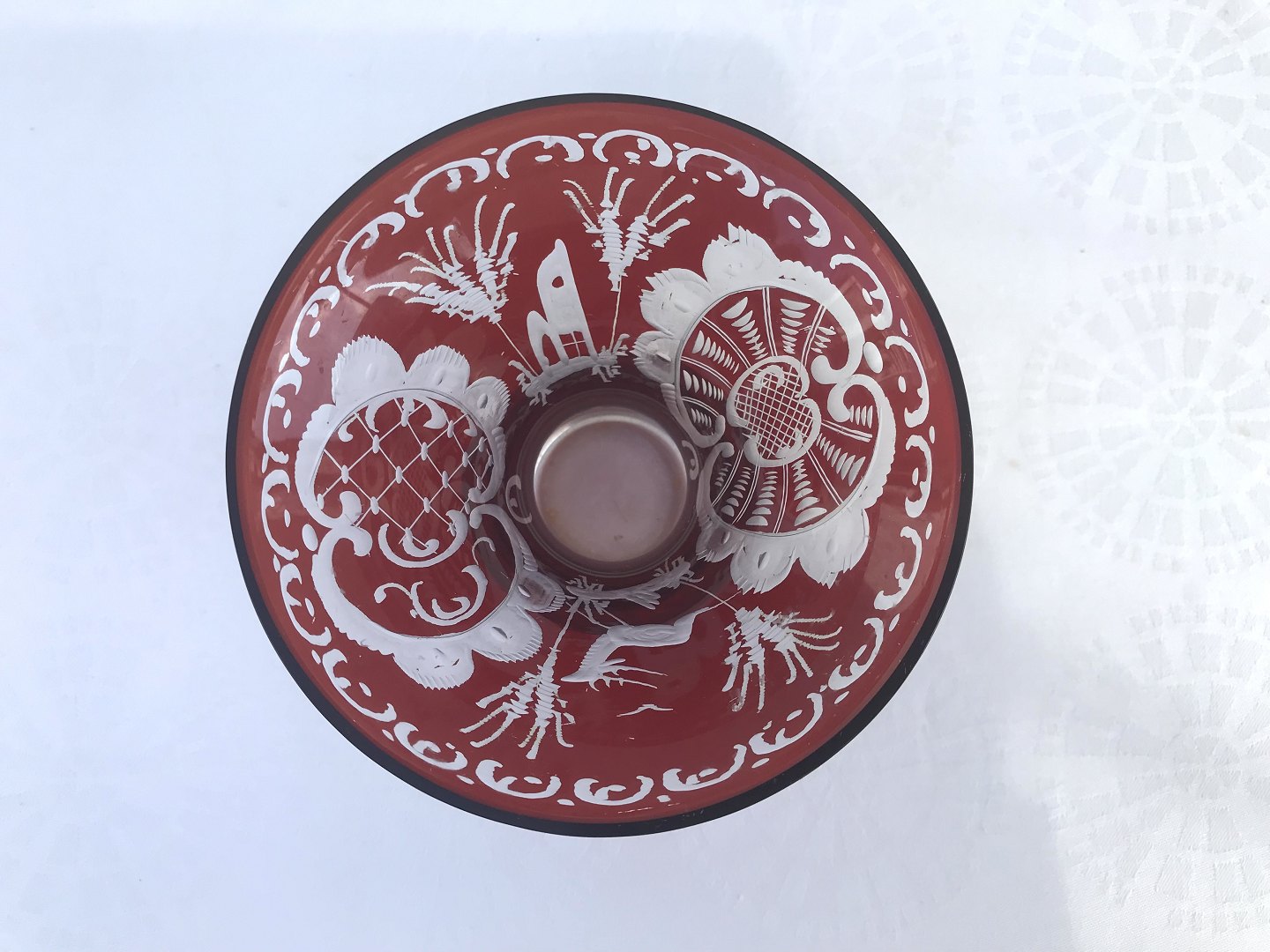 Bohemian glass, Red glass with sandings, Vase, 12.5 cm in diameter, 12 cm high * Perfect condition *