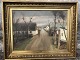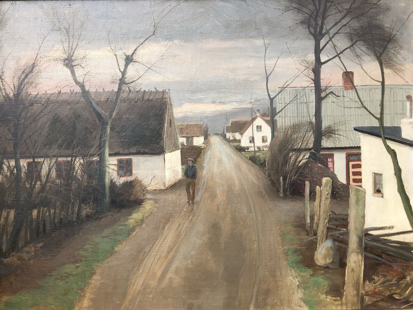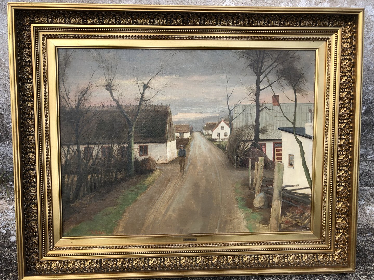 Oil painting by Th. B. Dahl, rural street. Nice condition, dimensions with frame 72x91 cm
