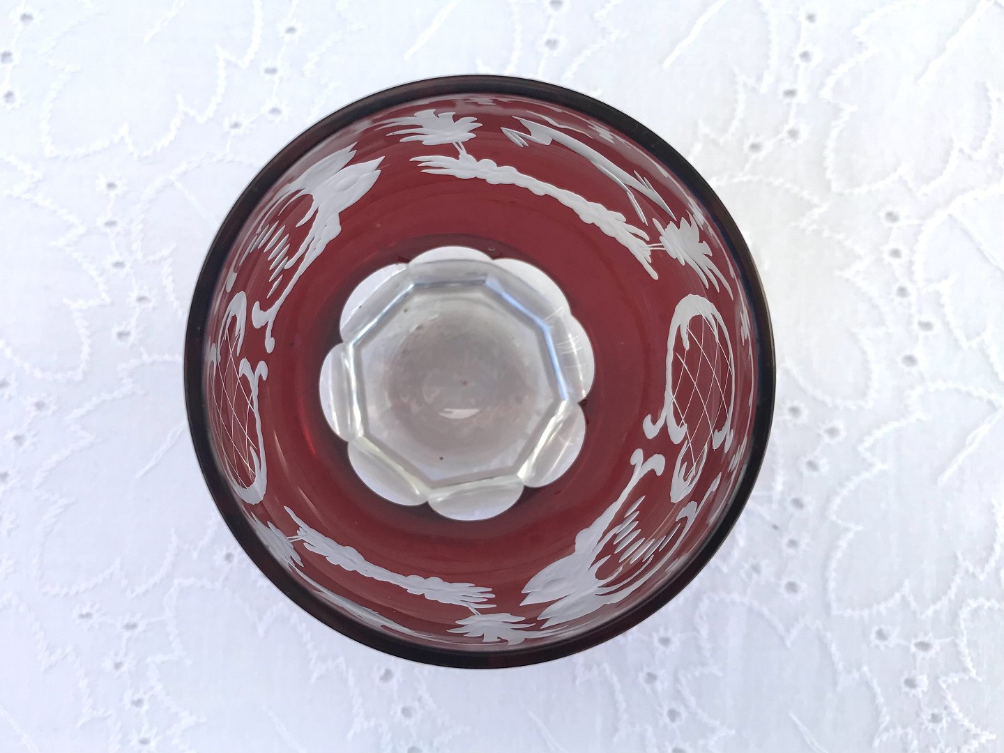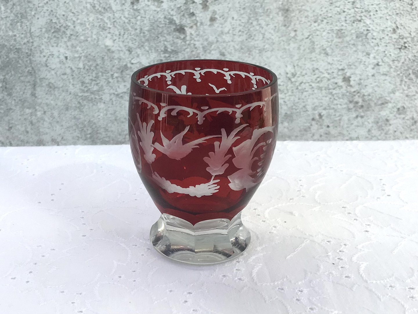 Bohemian glass, Red glass with sandings, Cup / Small vase, 8.5 cm high, 7 cm in diameter * Nice condition *