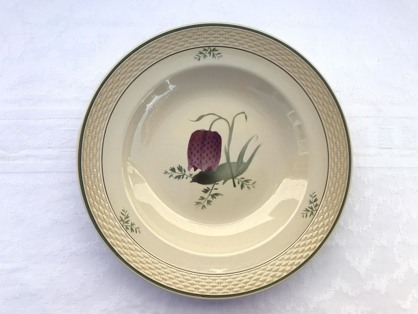 Royal Copenhagen, Aluminia, Victoria II frame shape, Fritillaria meleagris, Deep plate, 24.5 cm in diameter, Design Nils Thorsson * Nice condition *
