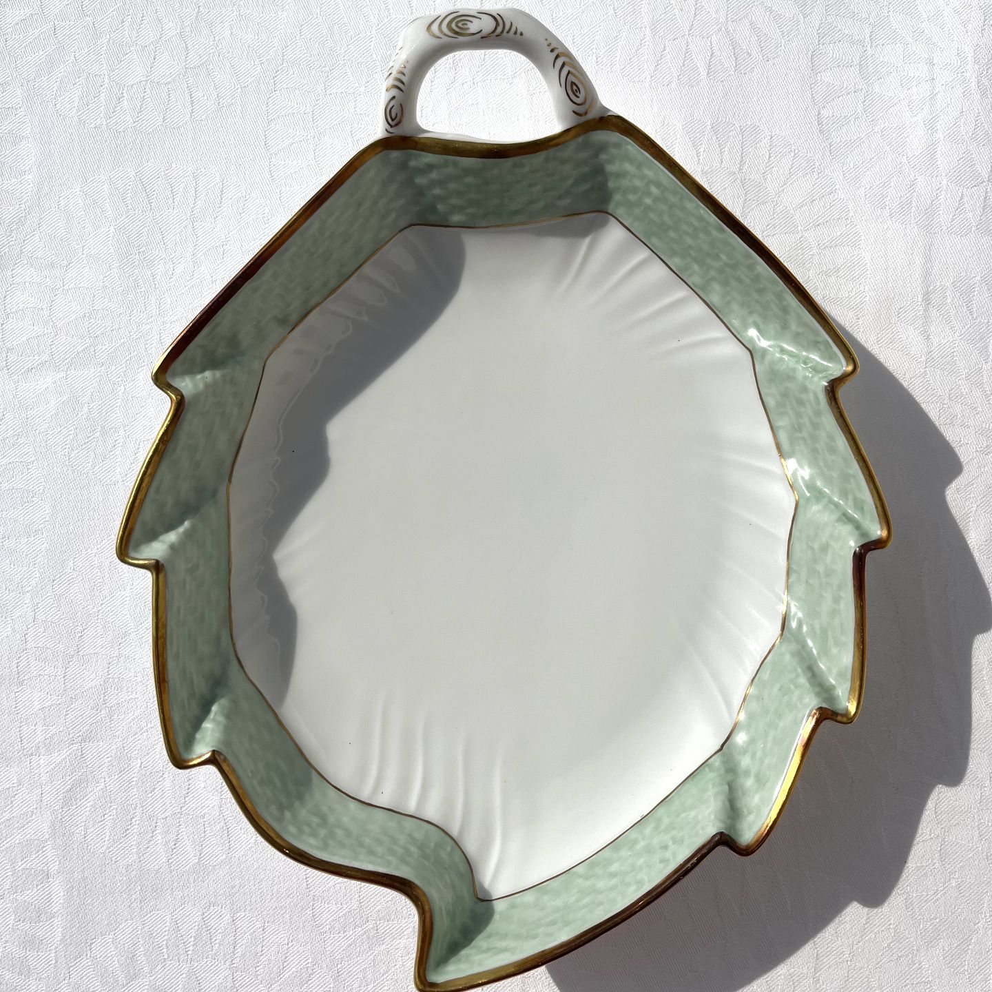 Royal Copenhagen, Green curved, Leaf dish # 952/1866, 22.5cm wide, 18cm deep, 1st grade * Perfect condition *