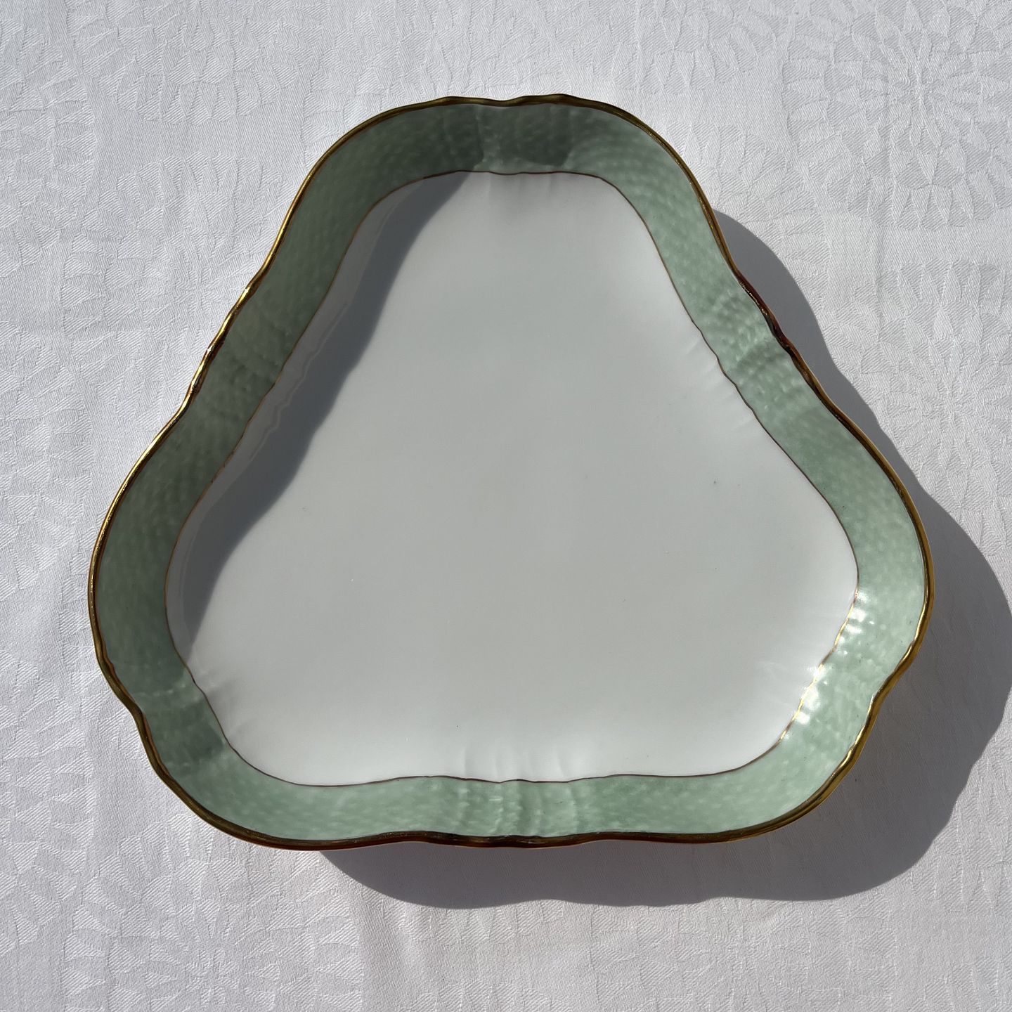 Royal Copenhagen, Green curved, Triangular dish 952/1526, 20.5cm wide, 1st grade * Perfect condition *