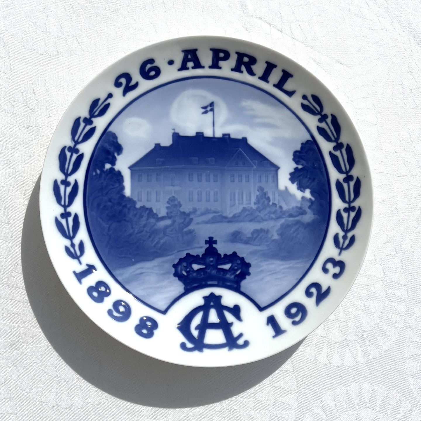 Bing & Grondahl, King Christian the X. & Queen Alxandrine silver wedding, 26 April 1898- 1923, Marselisborg castle, 1st grade, Design Acton Friis * Perfect condition *
