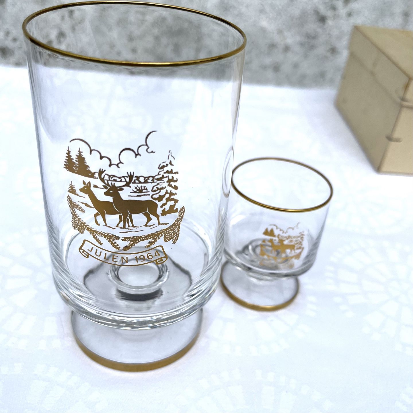 Holmegaard, Christmas glass, 1964, Large glass 13.5cm high, 7cm in diameter, Small glass 6.5cm high, 5cm in diameter * Perfect condition *