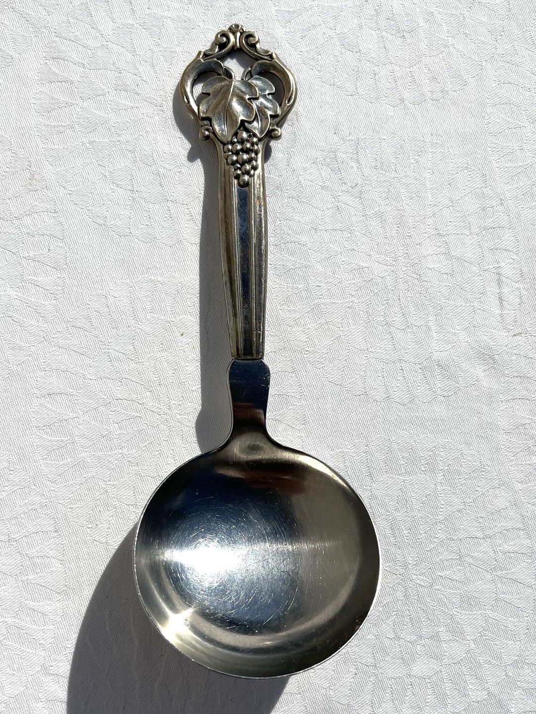 Bunches of grapes. Potato spoon in three-towered silver (830) and steel. From Cohr silverware factory, 20 cm long. Nice used condition
