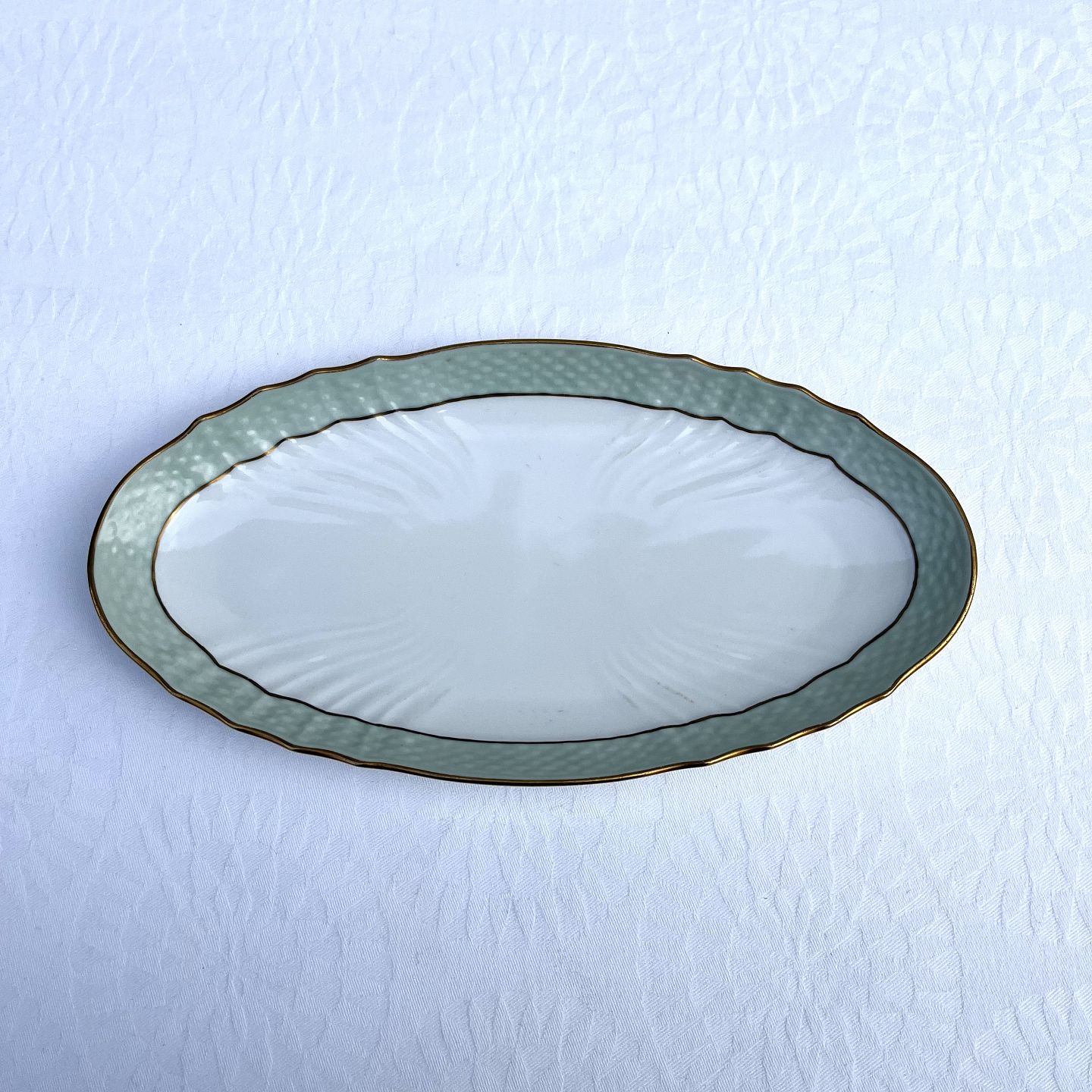 Royal Copenhagen, Green curved, Serving dish #952 / 1689, 24cm wide, 12.5cm deep, 1st grade *Nice condition*