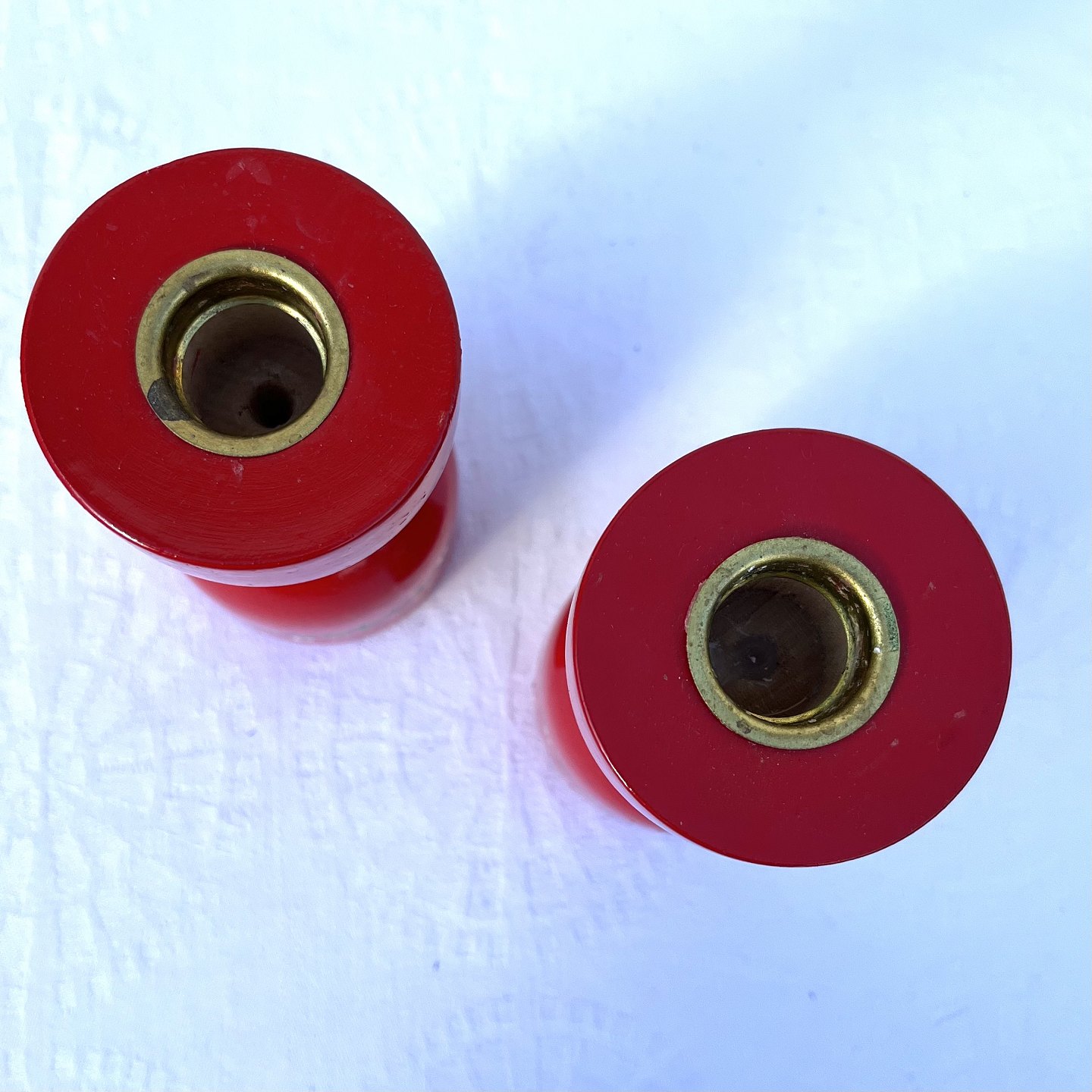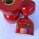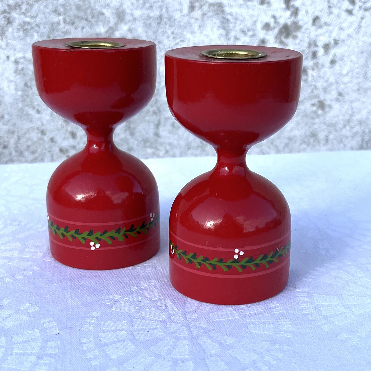 Red wooden candlesticks, Christmas candlesticks, 6cm in diameter, 11cm high, Design Helen and Mogens Lyholmer *Very nice condition*