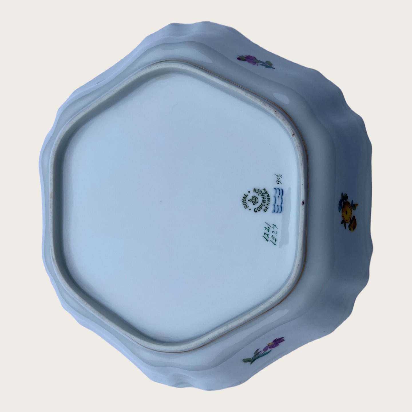 Royal Copenhagen, Saxon flower, Dish #1221 / 1527, White on curved shape, 22.5cm in diameter, 1st grade *Nice condition*
