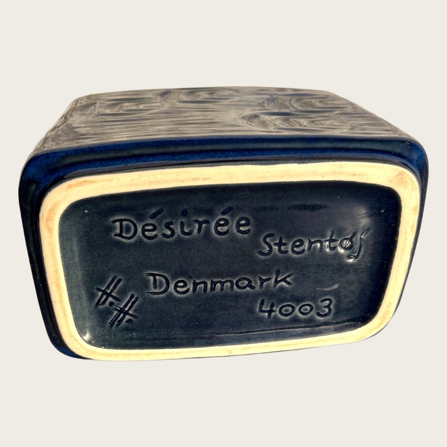 Désirée, Blue vase with circle motif #4003, 15cm wide, 9cm high, Désirée stoneware Denmark *Nice condition*