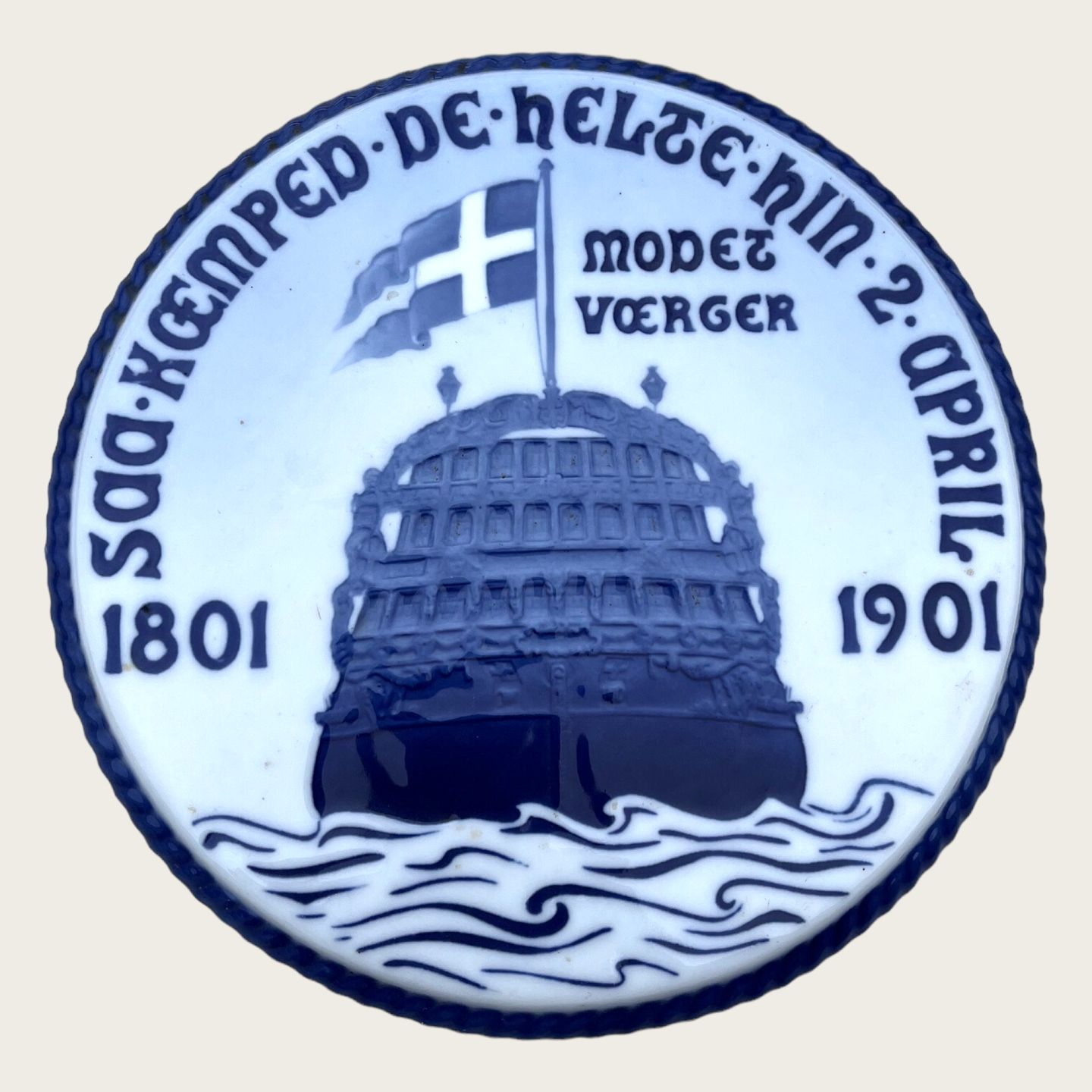 Bing & Grøndahl, Jubilee plaque, Battle of the nest, "So the heroes fought there 2 April 1801 - 1901 Brave guardians", 20.5 cm in diameter *Nice condition*