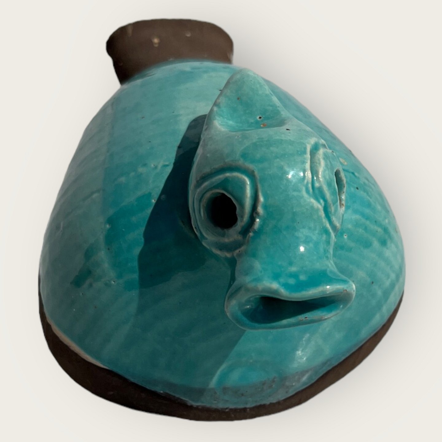 Ceramic bird, Turquoise glaze, 14cm wide, 9cm high, perhaps signed Mullerup?
