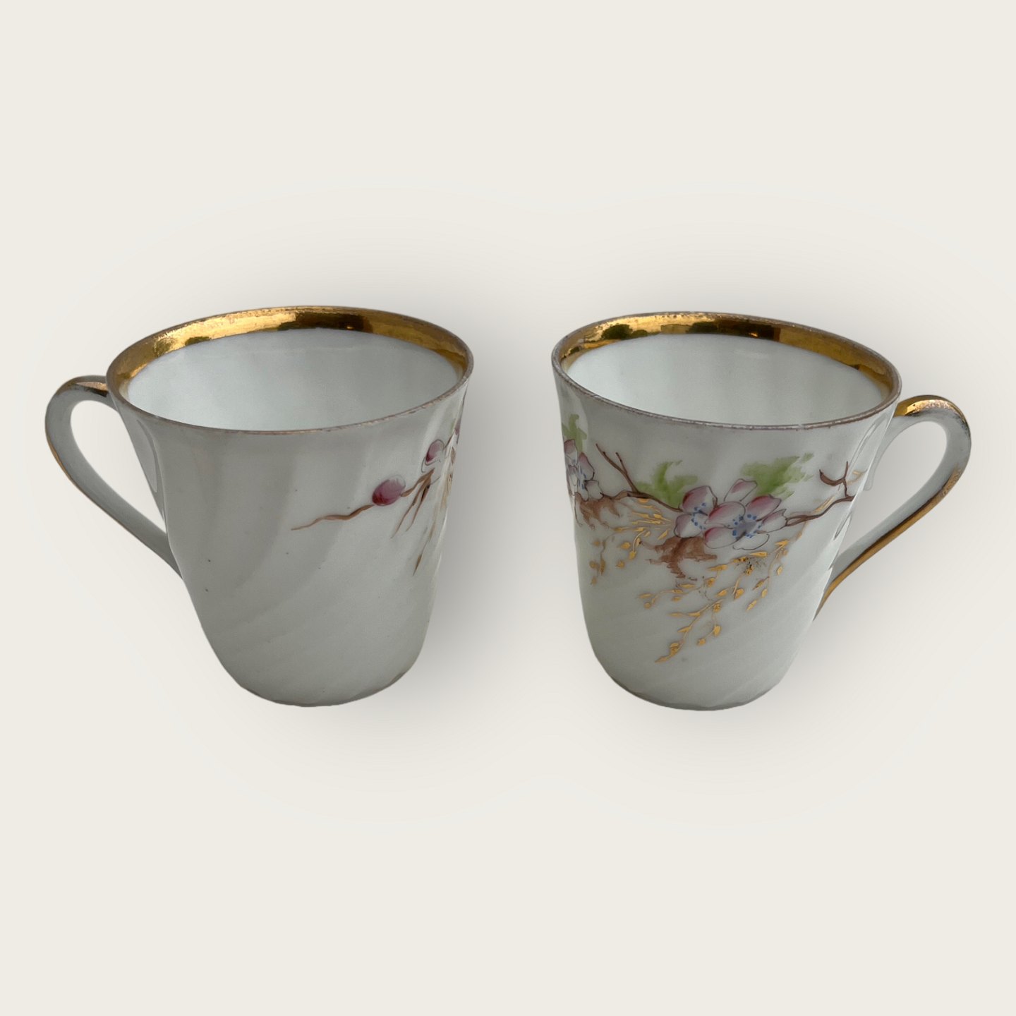 Bing & Grøndahl, 2 mocca cups with floral motif #B&G, 7cm high, 6.5cm in diameter *With notch on one saucer*