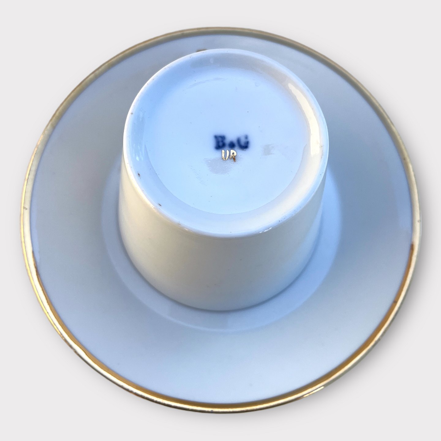 Bing & Grøndahl, Large morning cup #B&G, With gold rim, 9.5 cm in diameter, 8.5 cm high, Saucer 17.5 cm in diameter *With a little wear on the gold rim*